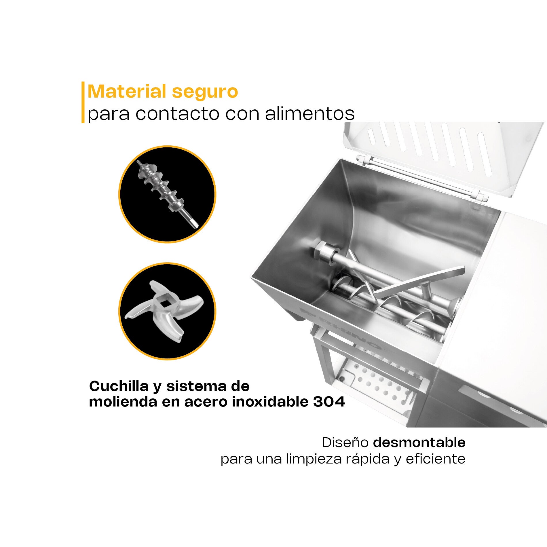 - Material de la estructura: Acero inoxidable